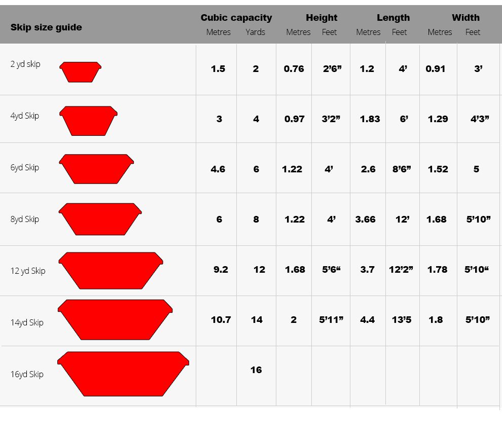 Below is a skip guide to help you decide what size you require. Don't worry if you're not sure though as our friendly office staff can help assist with that.